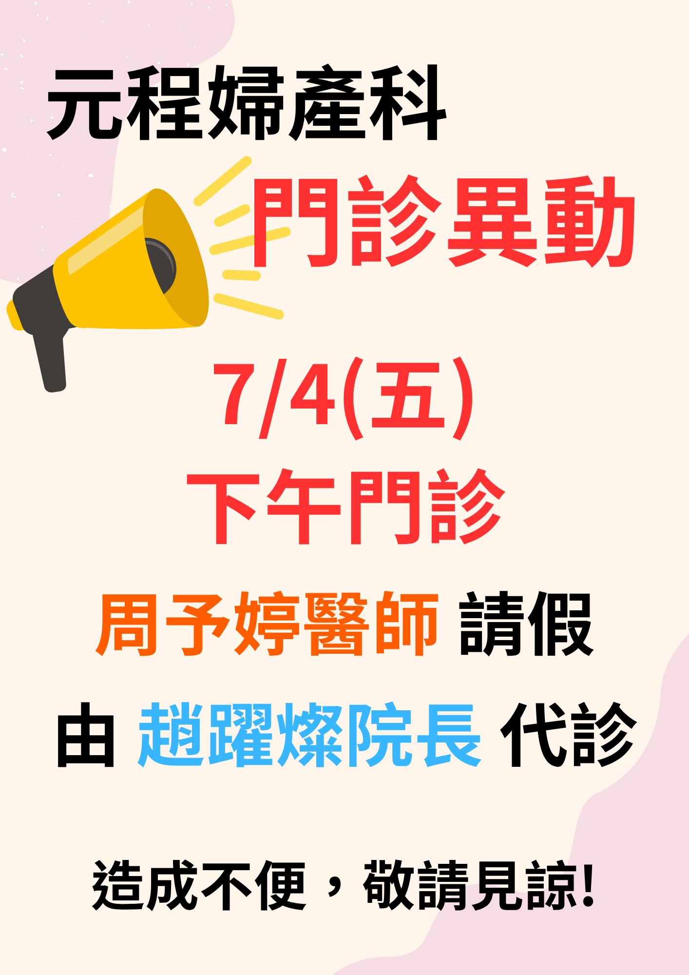 7/4門診異動公告