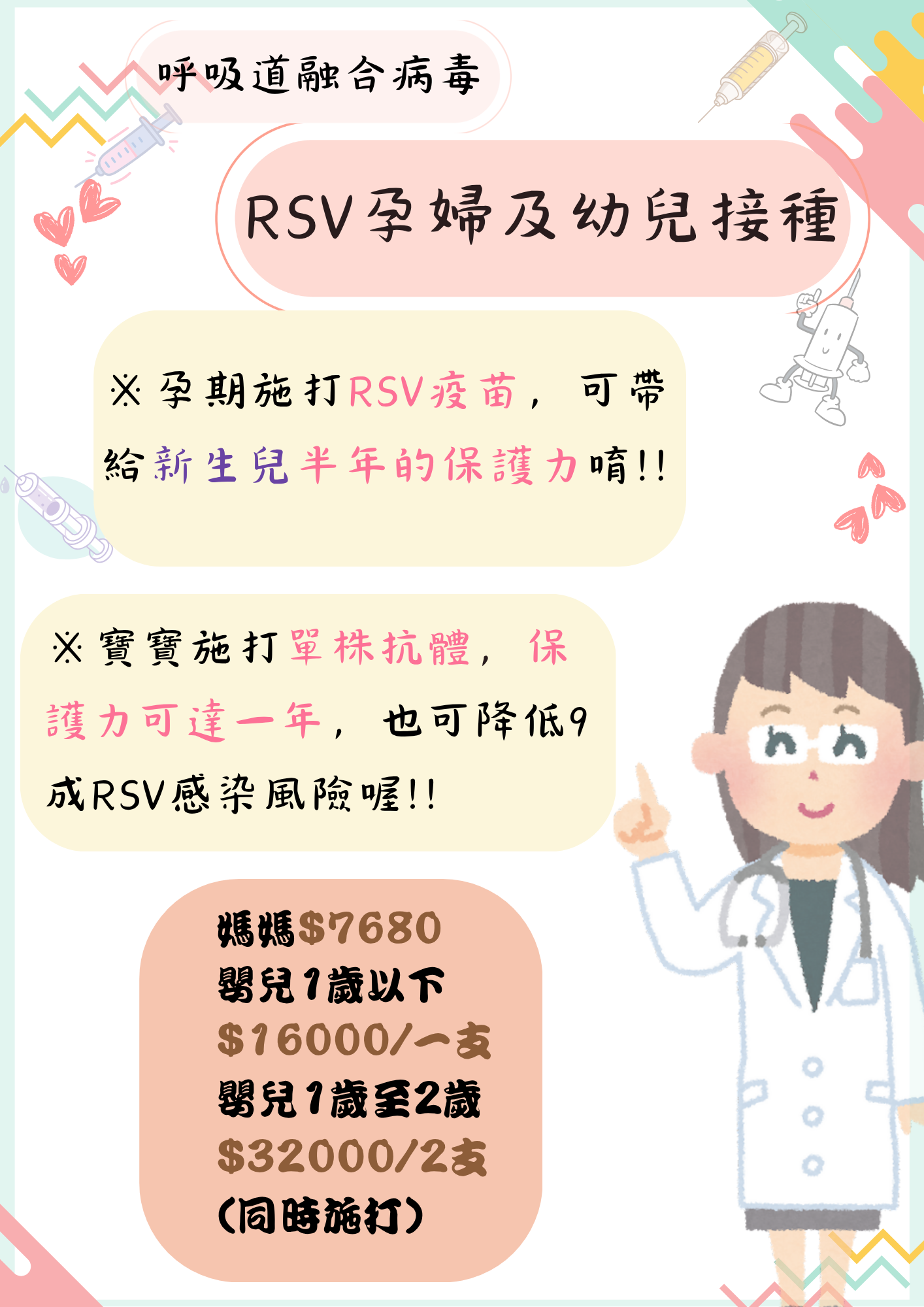 RSV呼吸道融合病毒預訂請洽櫃檯