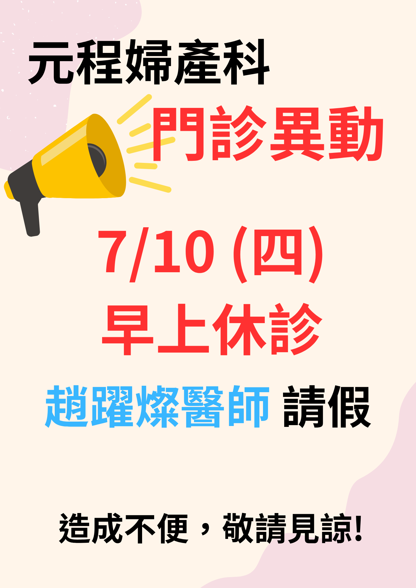 07/10(四)門診異動