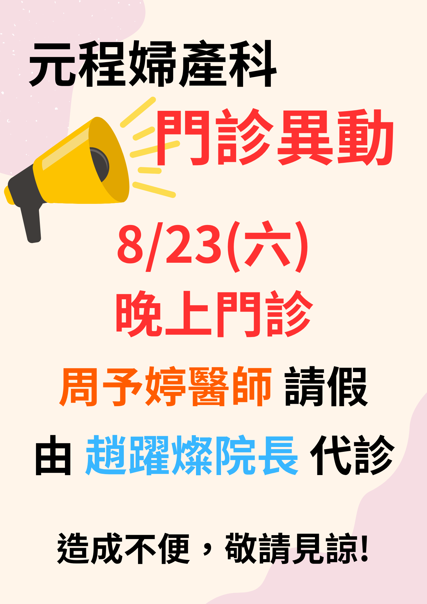 元程 08/23(六)門診異動