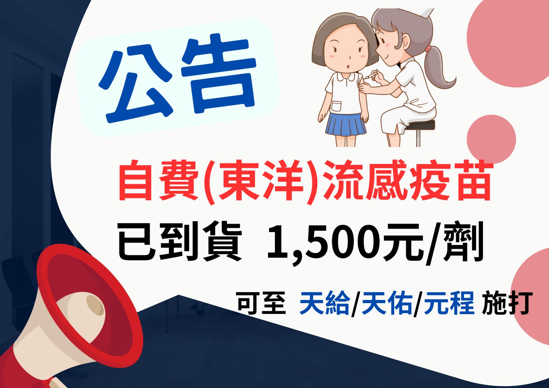 自費(東洋)流感疫苗到貨了 !