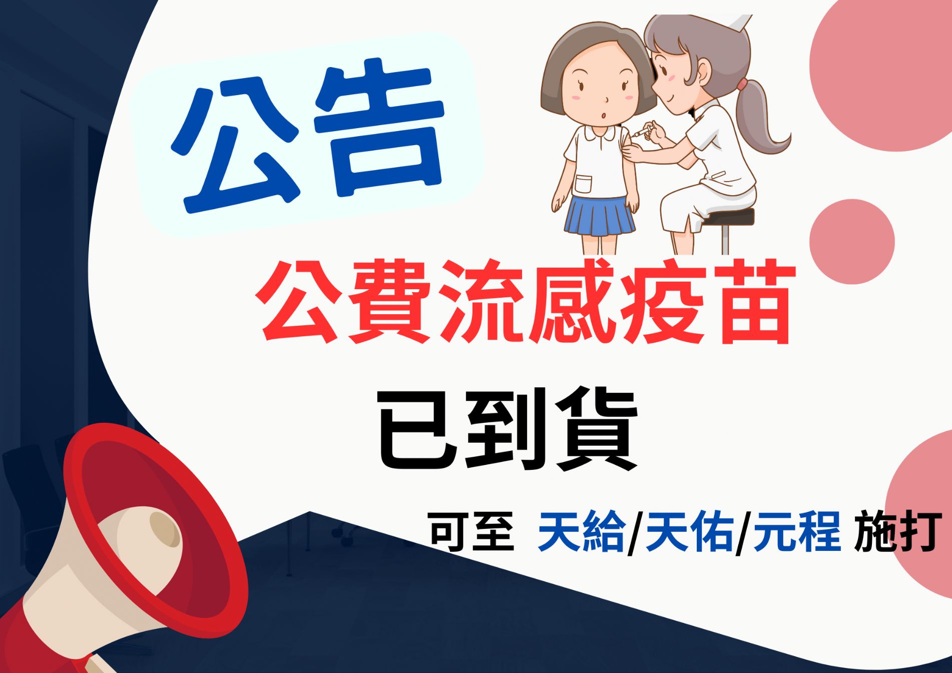 公費~流感疫苗~到貨了 !