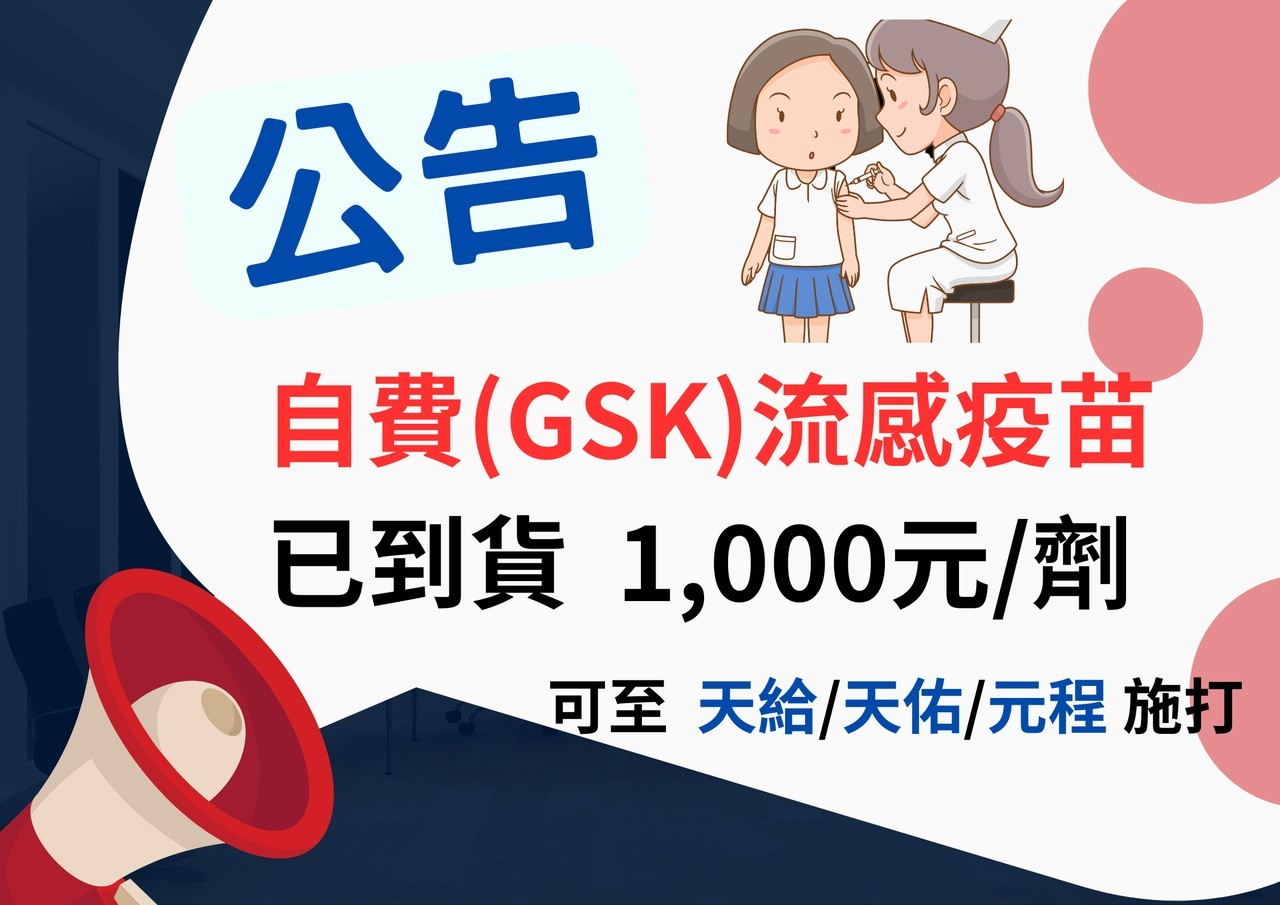 自費(GSK)流感疫苗到貨了 !